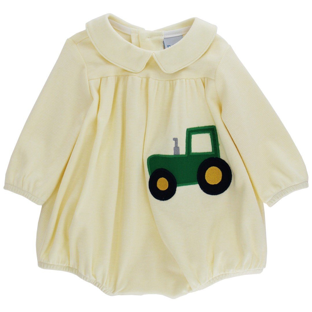 Farm living at its cutest. This adorable bubble is soft, cute and the coordinates well with the boy romper.
