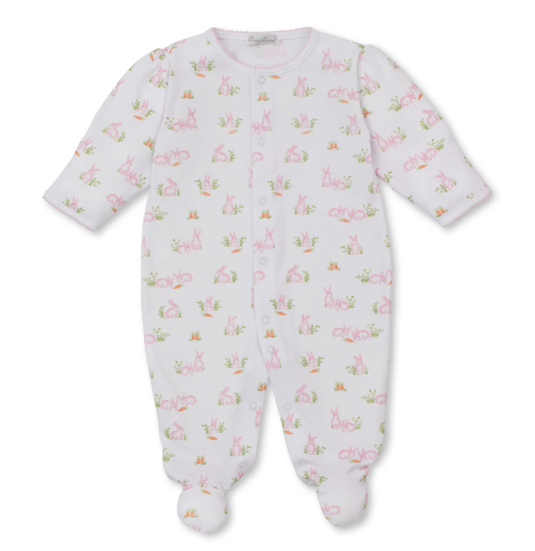 Playfully patterned with our pink baby bunny patch print, our cozy footie is perfect for your baby. Made from 100% Pima cotton for ultimate comfort and softness.