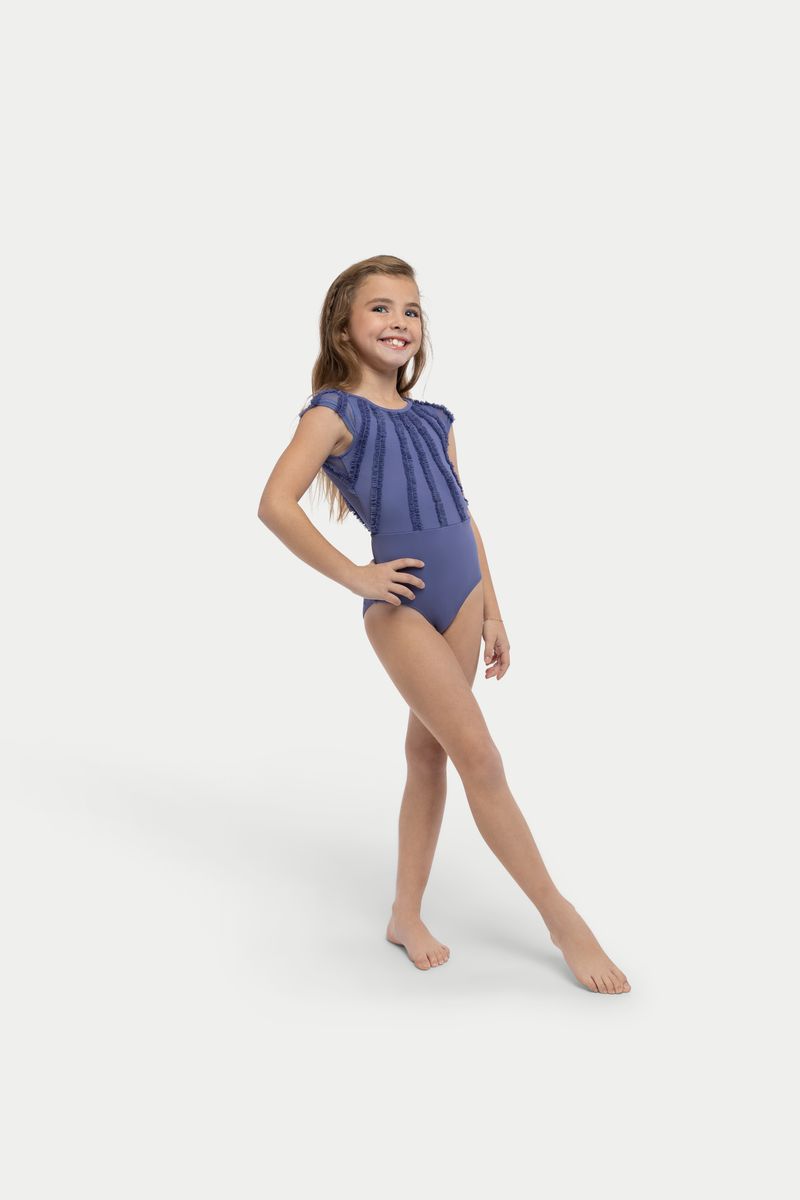 Cap Sleeve Mesh. Ruffle Stitching. Childrens Leotard