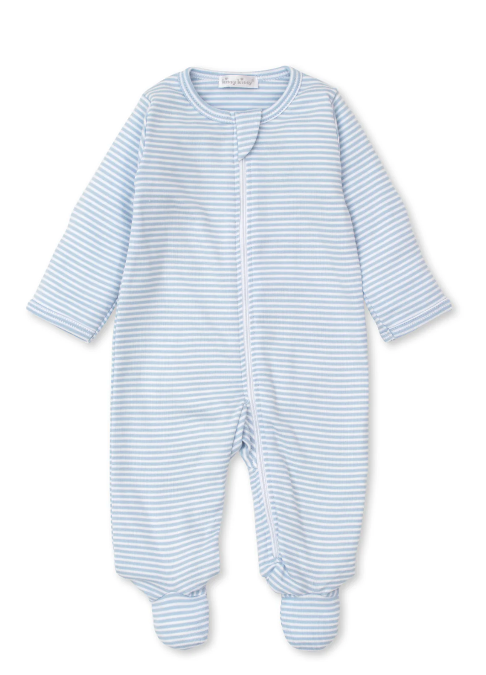 - Blue stripes are featured in this zip-up footie! Made from the softest Pima cotton for ultimate comfort on their way to dreamland.