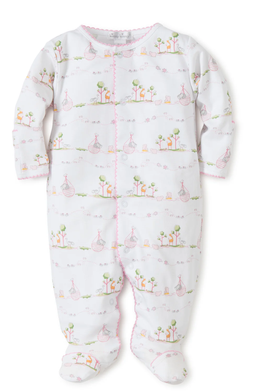 - Noah's adorable animal friends pattern this cozy footie for your baby girl. Made from the softest Pima cotton for ultimate comfort.
