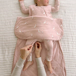 Get ready to sleep a lot, a lot, when your little one is cuddled in the luxurious günamüna® sleep bag duvet. This down alternative sack with evenly distributed weight increases relaxation while our one-of-a-kind WONDERZiP® keeps baby covered during changes.